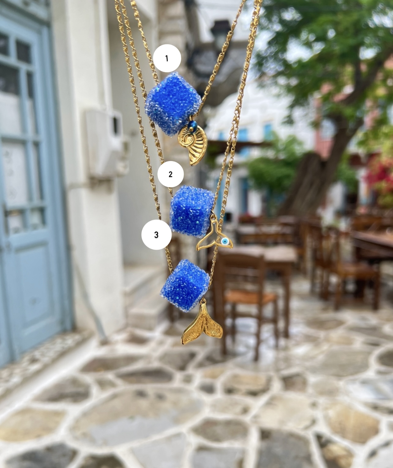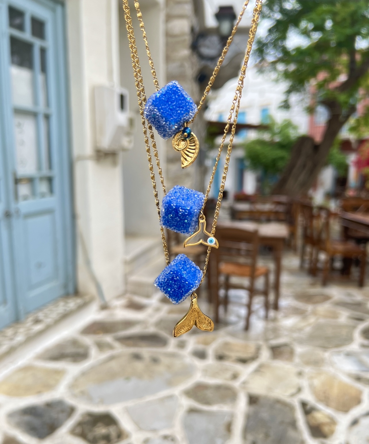 Υλικά: Ατσάλινη Αλυσίδα, επιχρυσωμένα στοιχεία, κύβος με κρυσταλλάκια