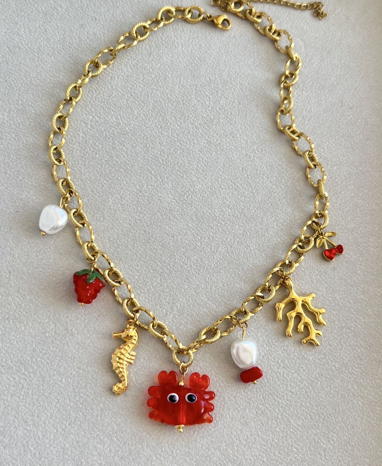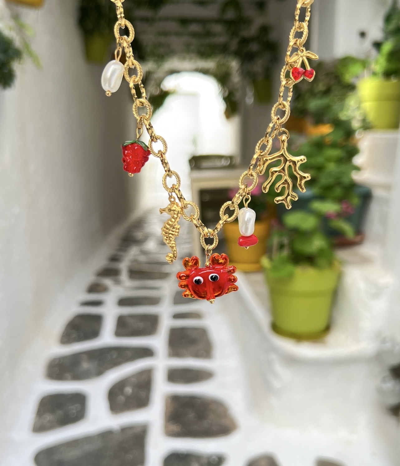 - Υλικό:Επιχρυσωμένη ατσάλινη αλυσίδα, στοιχεία μουράνο