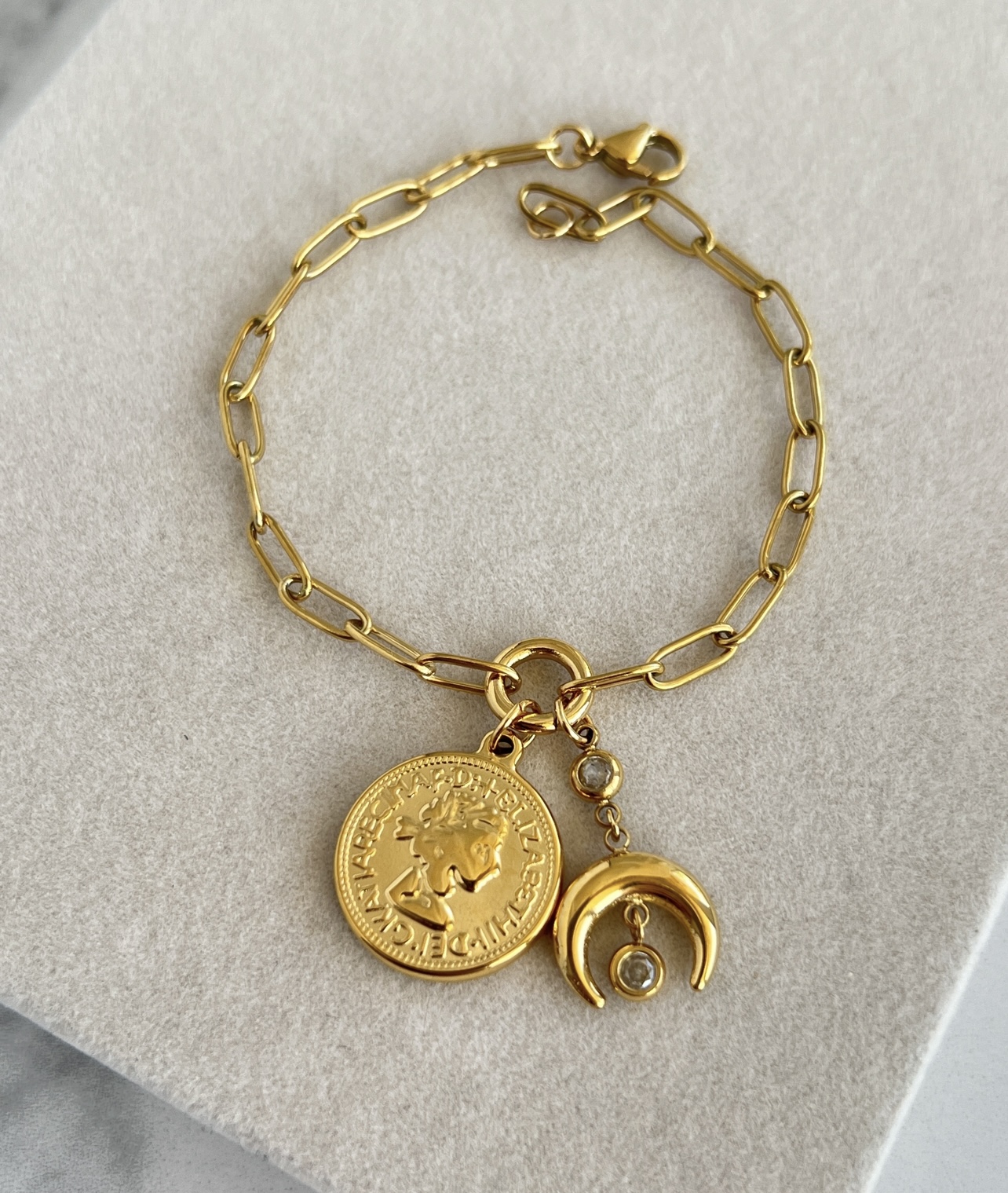 - Υλικό: Αλυσίδα από επιχρυσωμένο ατσάλι, στοιχεία από επιχρυσωμένο ατσάλι, zircon