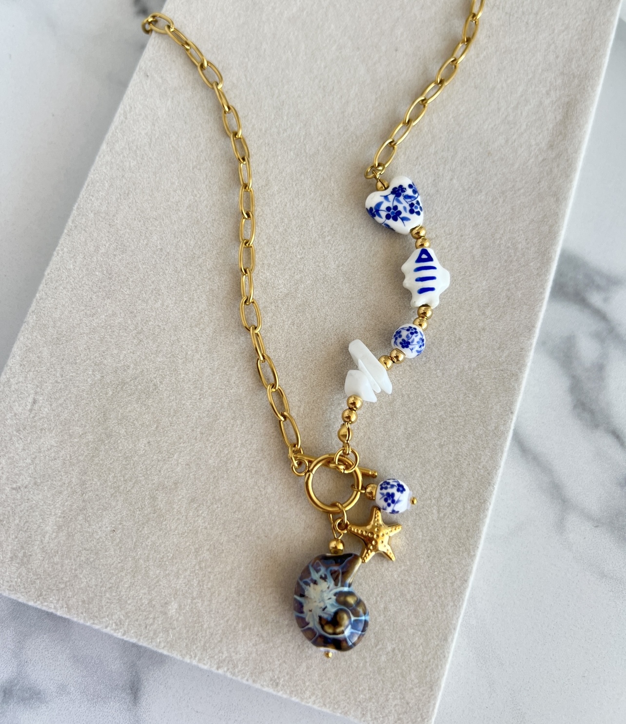 - Υλικό: Επιχρυσωμένη ατσάλινη αλυσίδα, επιχρυσωμένα ατσάλινα στοιχεία, κεραμικά στοιχεία