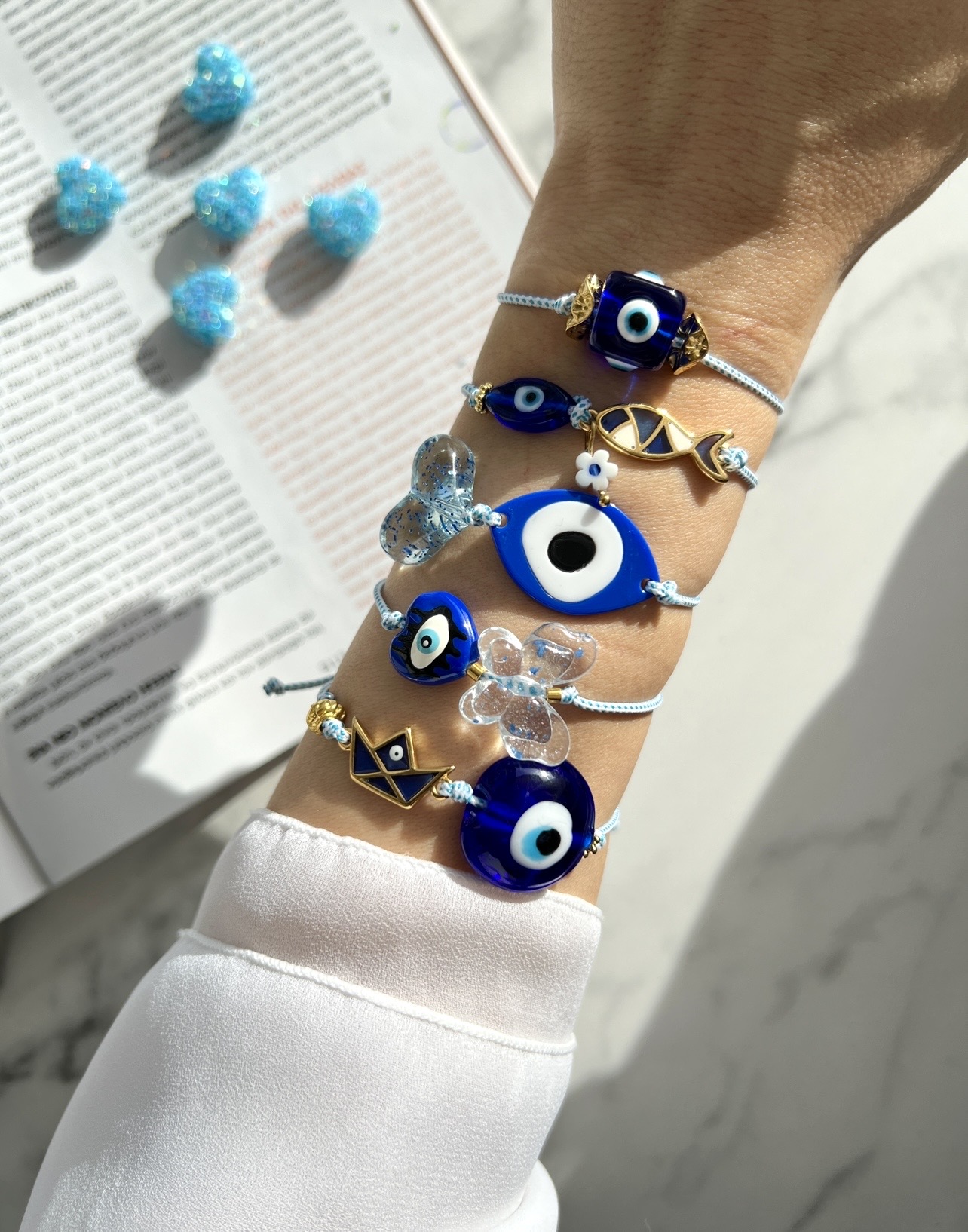 Υλικά: Στοιχεία από επιχρυσωμένο ορείχαλκο 24κ, γυάλινες χάντρες, σμάλτο