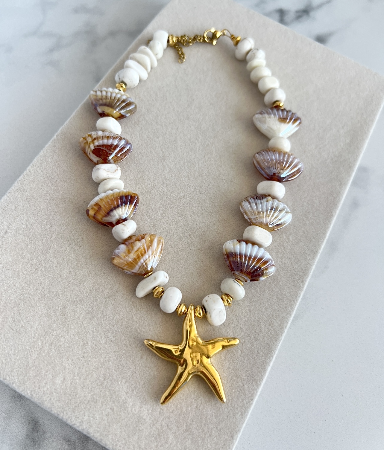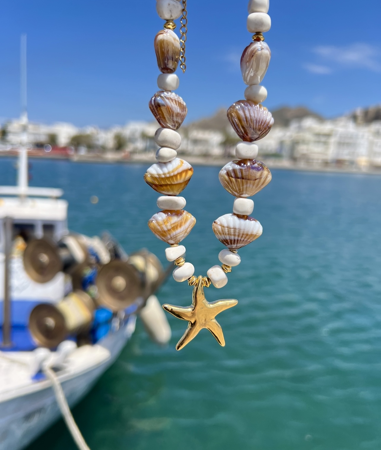 - Υλικό:Επιχρυσωμένα στοιχεία από ορείχαλκο, χάντρες μουράνο, χάντρες χαολίτη