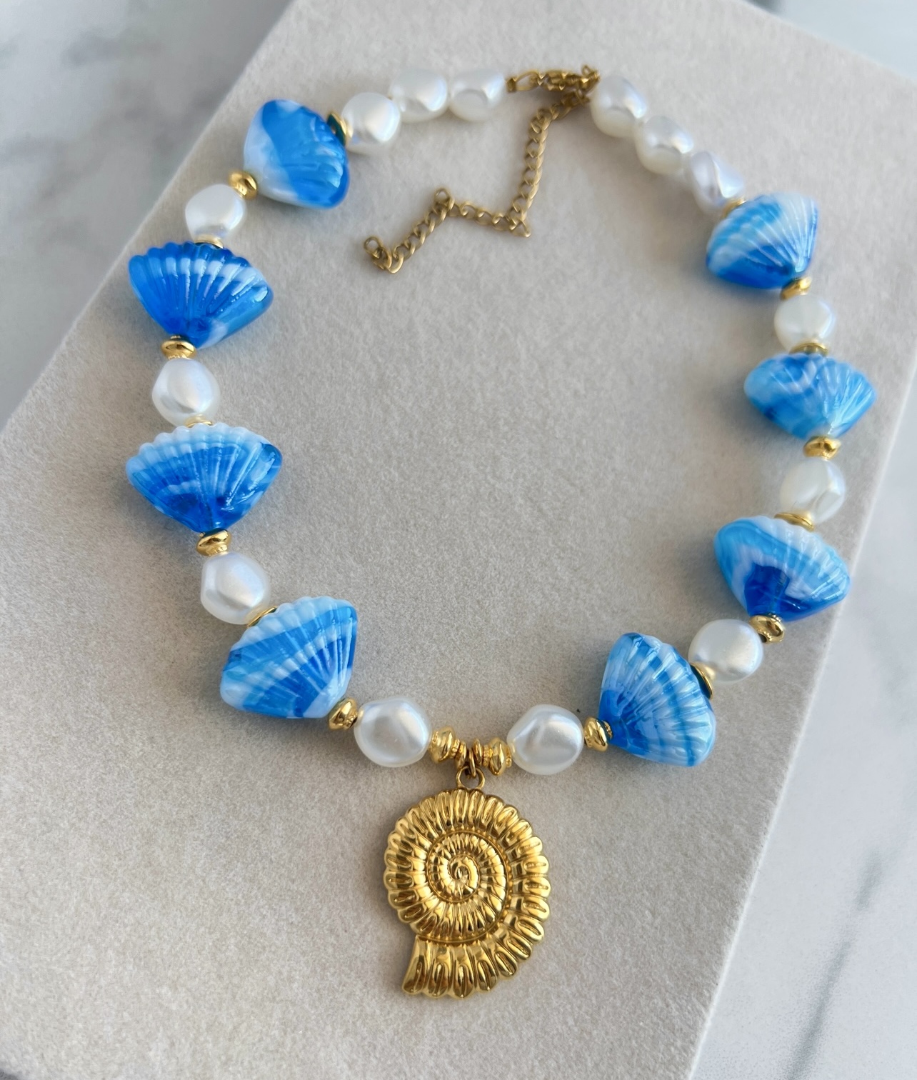 - Υλικό:Επιχρυσωμένα στοιχεία από ορείχαλκο και σμάλτο, χάντρες μουράνο, πέρλες, επιχρυσωμένο ατσάλινο κεντρικό στοιχείο